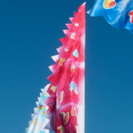 Working with over 120 primary school children a series of seven transfer-printed silk flags were made during the festival education day.
