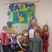 Basic techniques were used such as potato prints to make colourful banners, flags and bandanas with the fairtrade logo as a central theme.